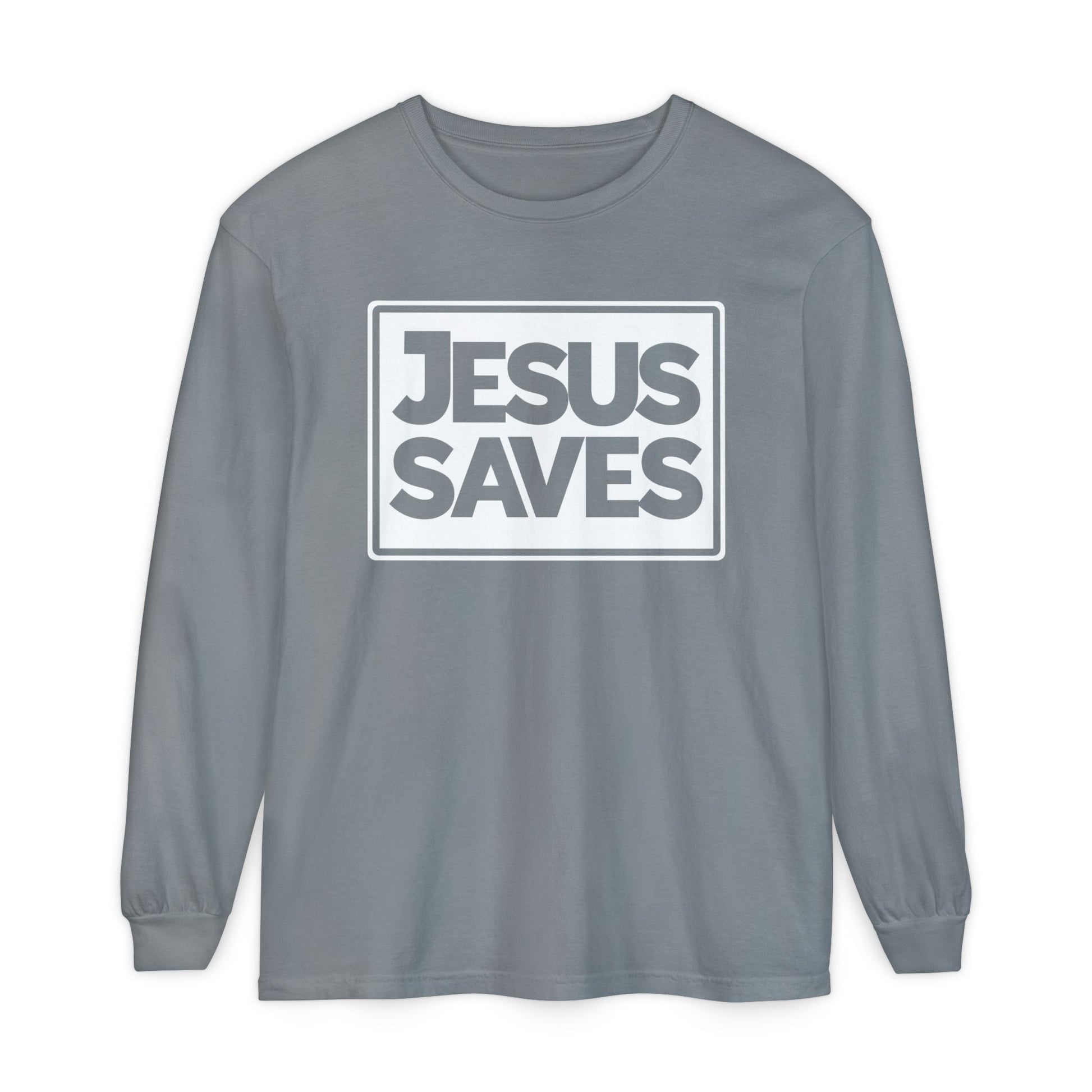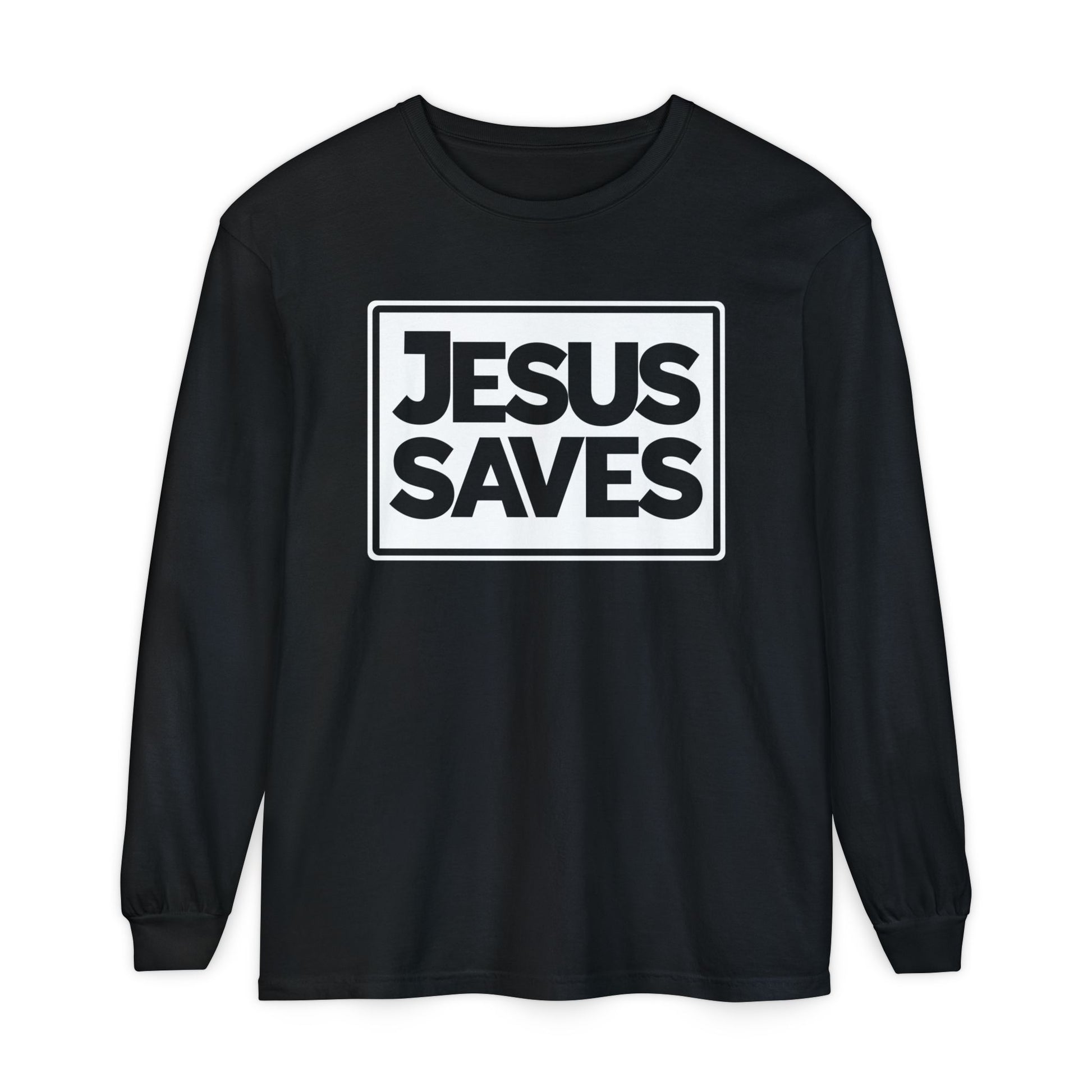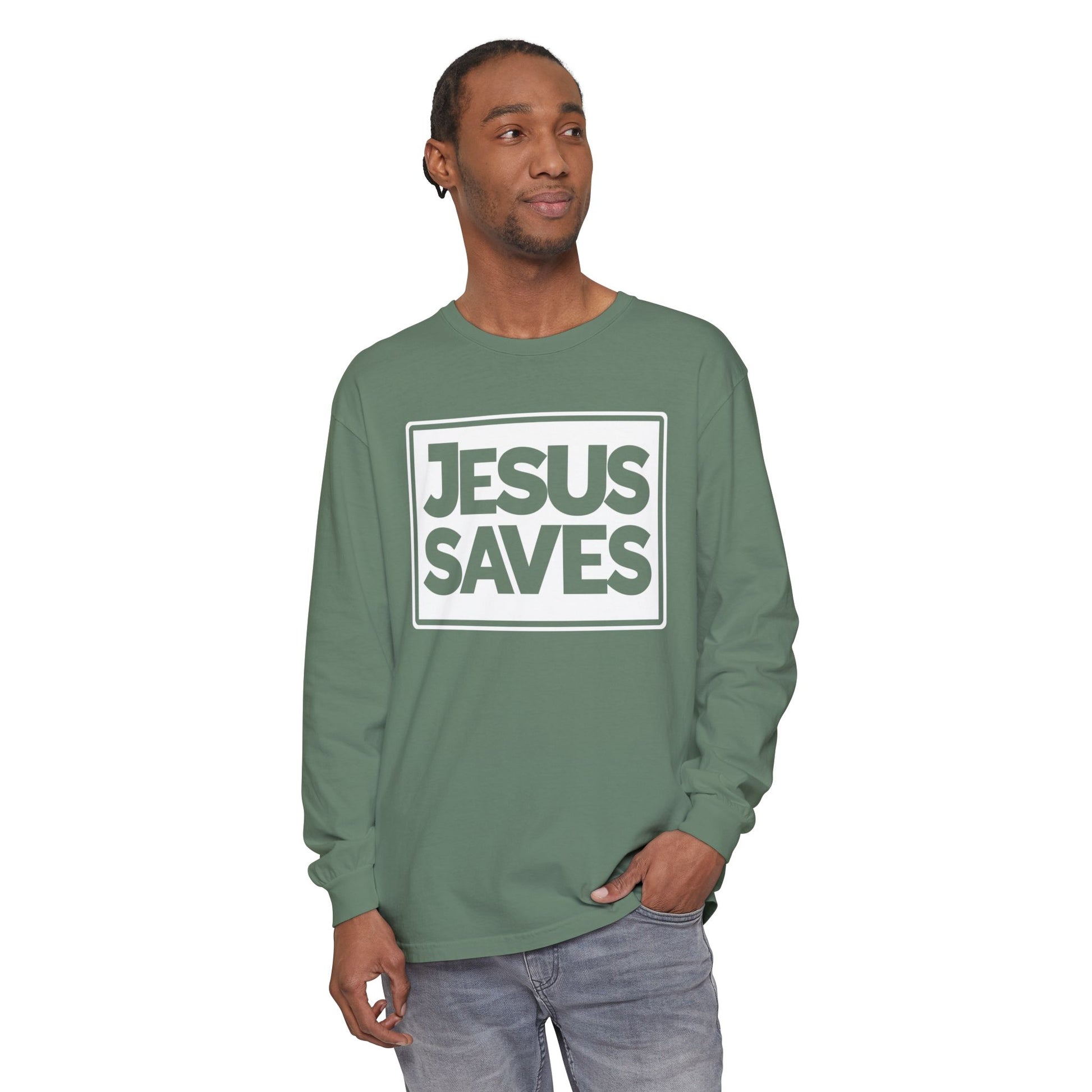 Jesus Saves Garment-dyed Long Sleeve T-Shirt